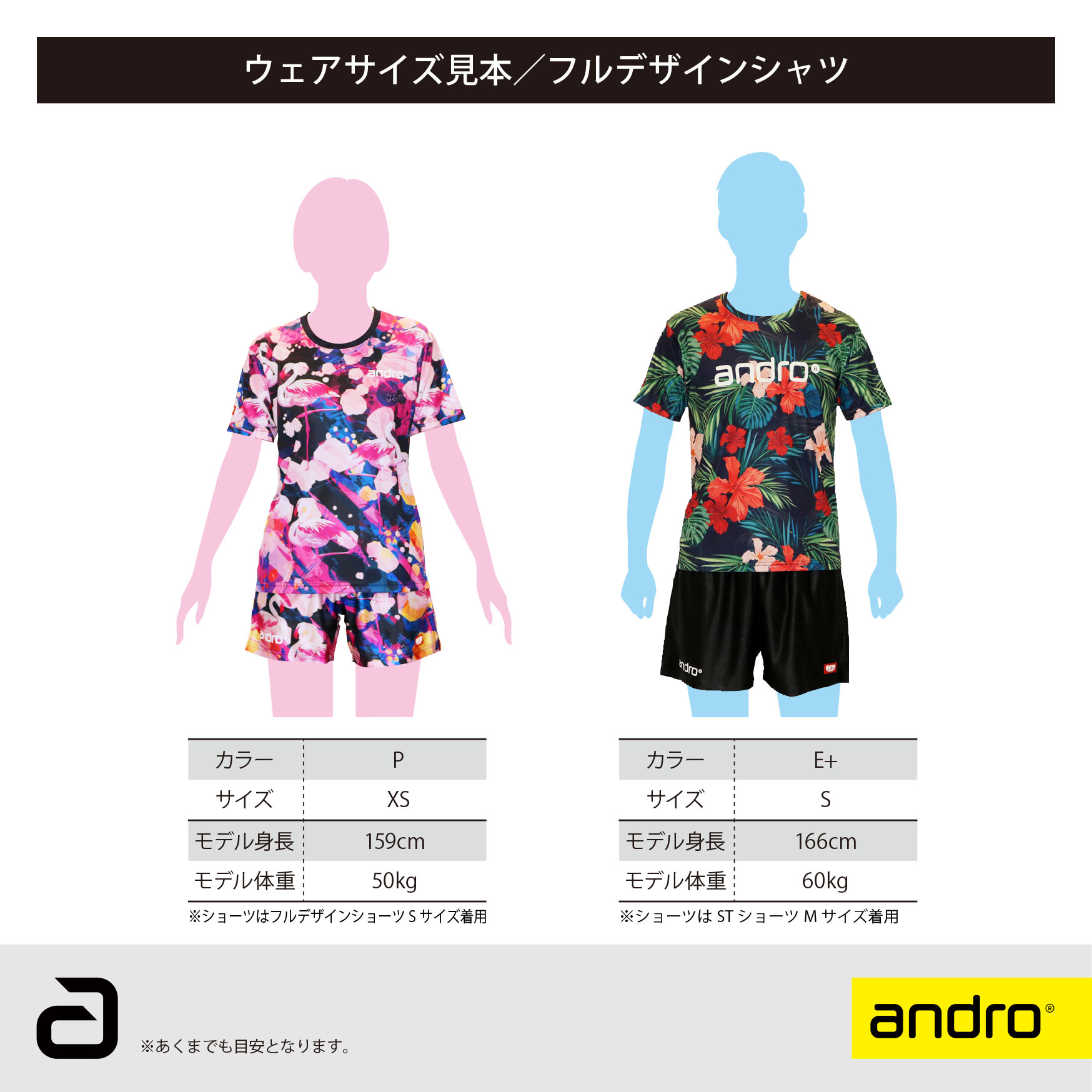 平素は、アンドロ製品をご愛用いただき誠にありがとうございます。 この度は、アンドロウェアサイズ見本や生地感が伺えるアップ写真等を追加いたしました。